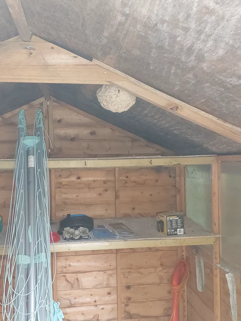 Our second job brought us to a residential property with a wasps nest within the shed in the rear of the garden. Wasps can be aggressive, especially when they feel their nest is threatened.